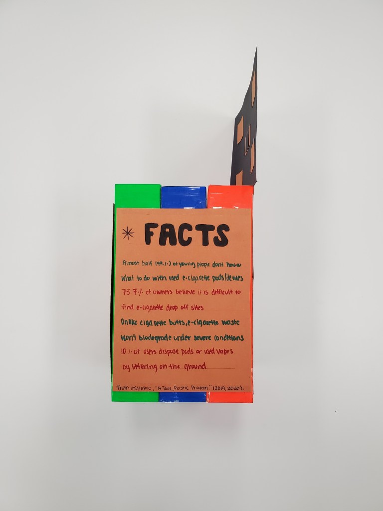 Our aim for this project was to control how people dispose of nicotine products to reduce environmental waste and pollution. Our objective was to create a sustainable and accessible solution that allows our users to access safe ways to dispose of items easily. Our goal was to also educate our users about the harmful effects of littering and the consumption of nicotine products. The main task our users needed to accomplish was the ability to understand where and how to correctly dispose of products.